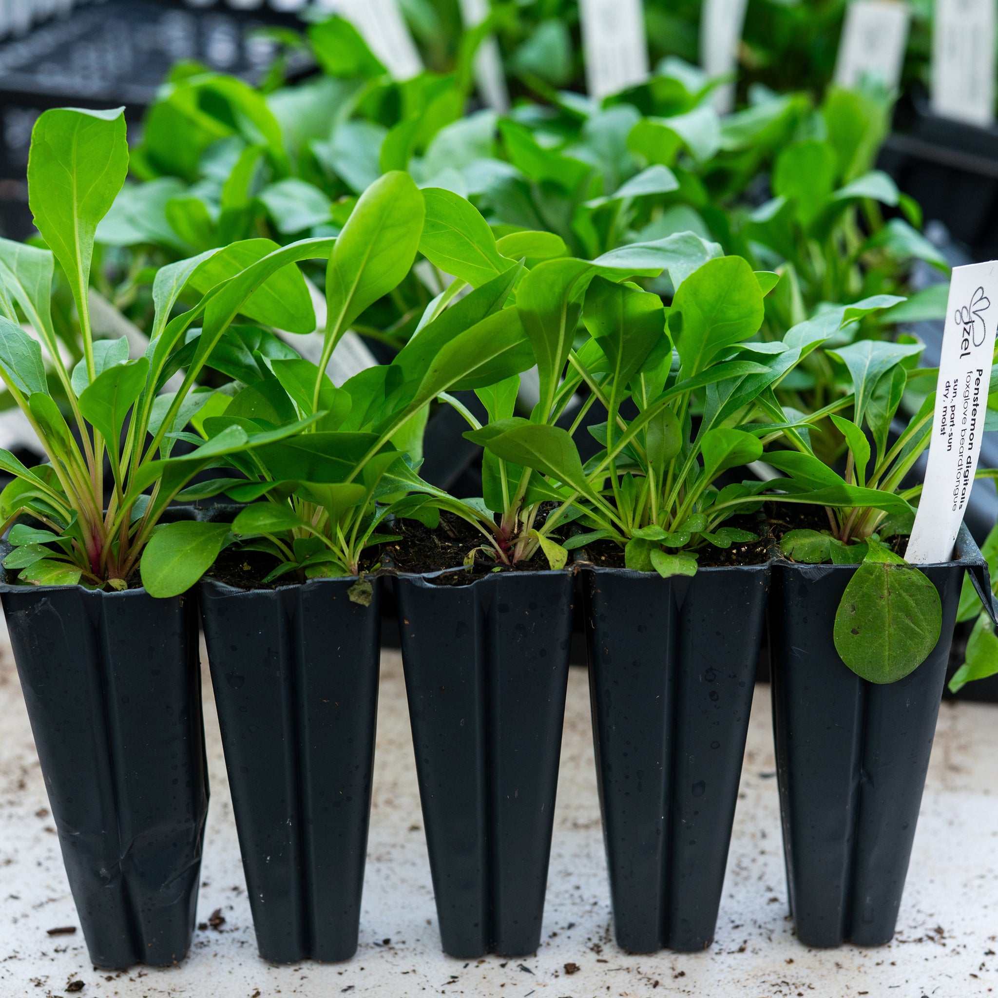 These deep plugs allow for a large plant — up to 16” tall depending on the species and time of year — with a well-established, mature deep root system.
