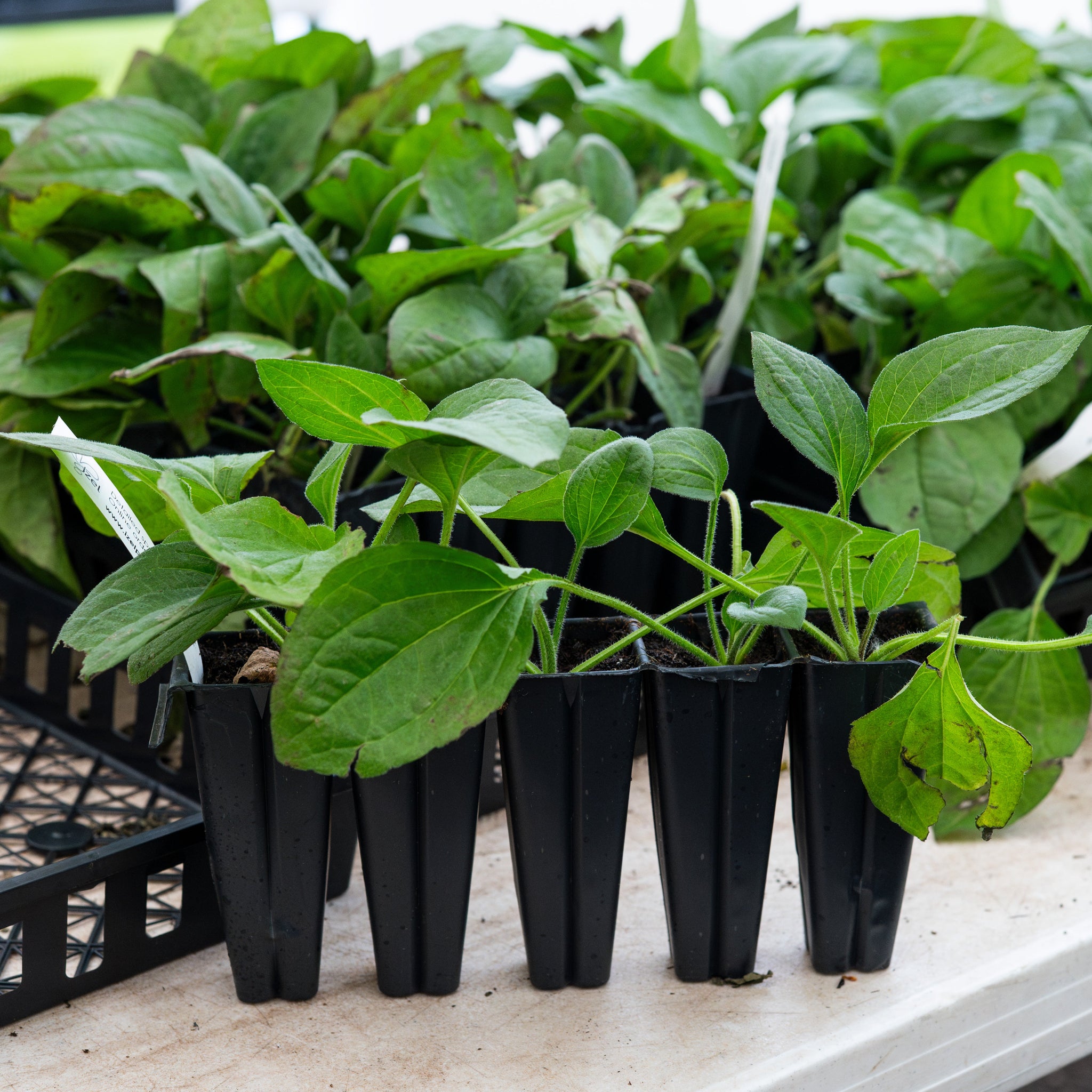 These deep plugs allow for a large plant - up to 16” tall depending on the species and time of year - with a well-established mature, deep root system.
